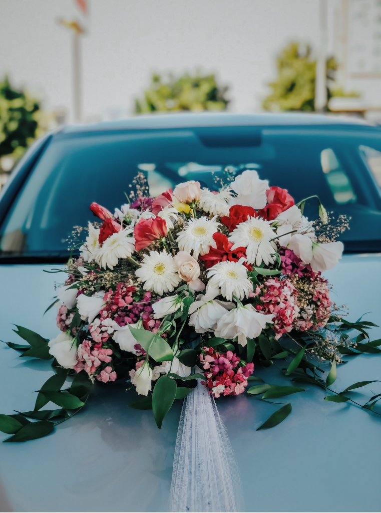 אצלנו תוכלו להזמין קישוט רכב לחתונה בעיצוב ייחודי, אלגנטי או רומנטי, עם שילובי פרחים וסרטים בהתאמה אישית.